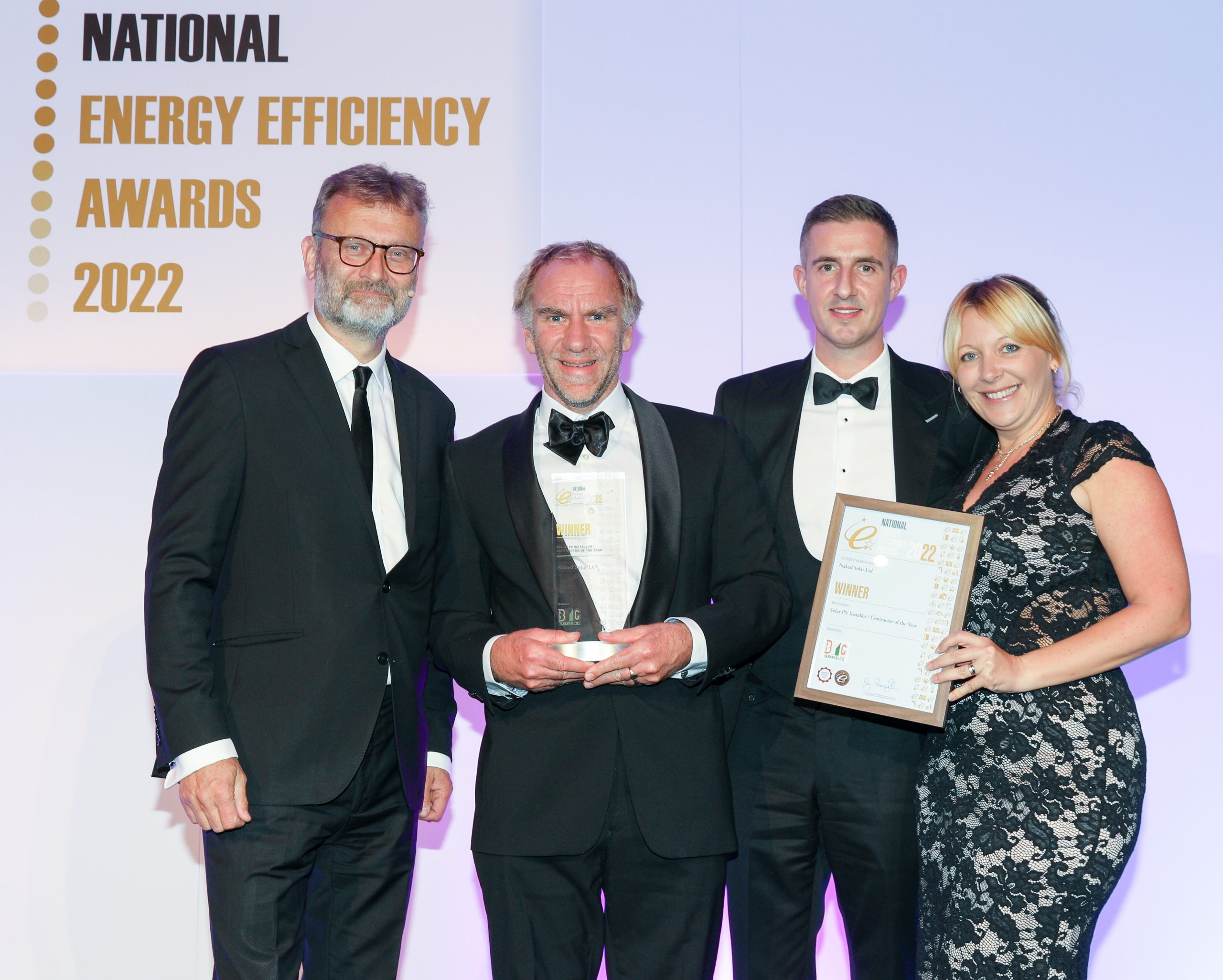 Naked Solar, have been crowned winners of The National Solar PV Installer and Contractor of the year at the Energy Efficiency Awards. Held last weekend in Birmingham, hosted by Dan Walker and comedian Hugh Dennis, the event was a who’s who in the world of sustainable business.