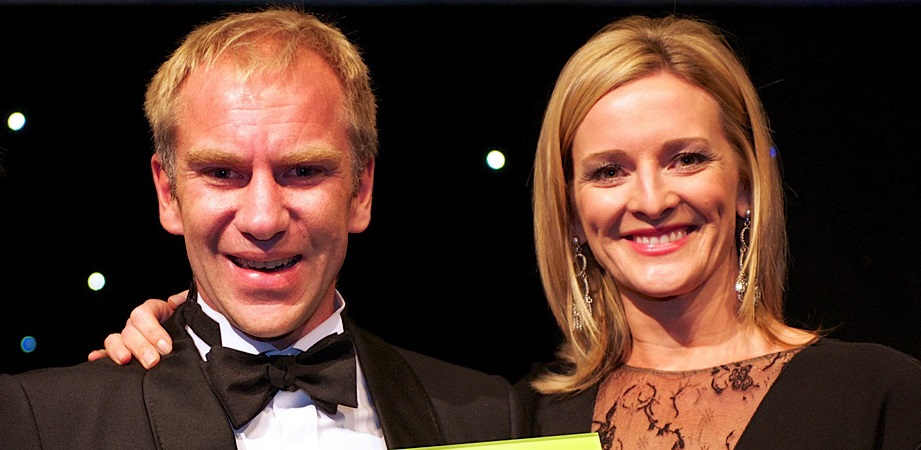 Top image: Tony receives his award for Best New Renewable Energy Installer from TV presenter Gabby Logan, at the 2012 UK Renewables Roadshow Awards